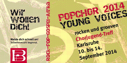 am 10. bis 14. September 2014 findet der Jugendchortreff 2014 in Karlsruhe statt, veranstaltet vom Badischen Chorverband. Nähere Angaben entnehmen Sie bitte dem nebenstehenden Aushang (durch anklicken Großansicht). Weitere Informationen finden Sie auch auf der Website des Badischen Chorverbandes.